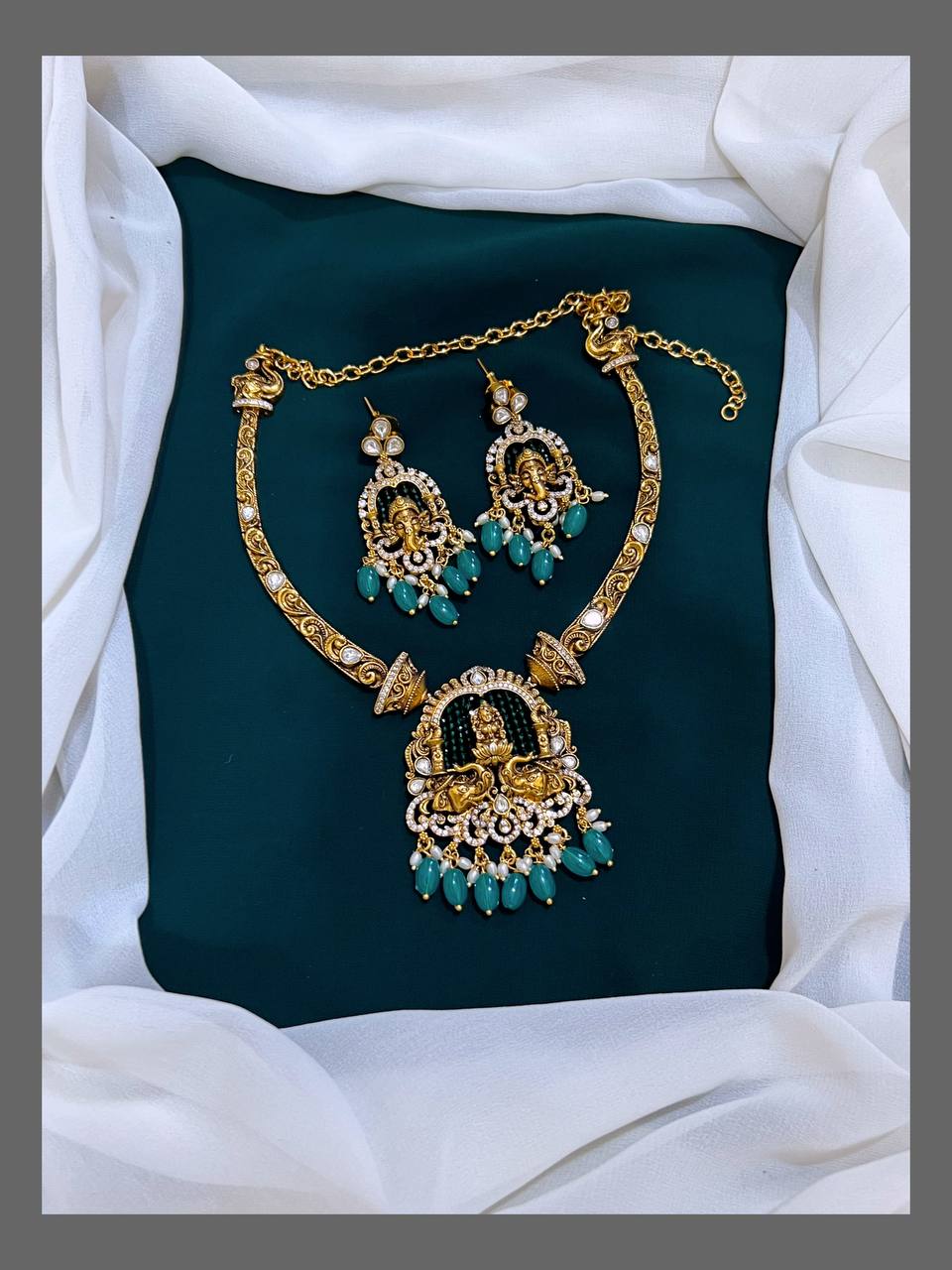 Celebrate timeless elegance with this Victorian Kante set featuring a beautifully crafted Lakshmi pendant and matching earrings. Designed to enhance your traditional attire, this set brings a touch of heritage and grace to any occasion. Perfect for festive events or special gatherings, it combines classic charm with spiritual symbolism, making it a meaningful addition to your jewelry collection.
