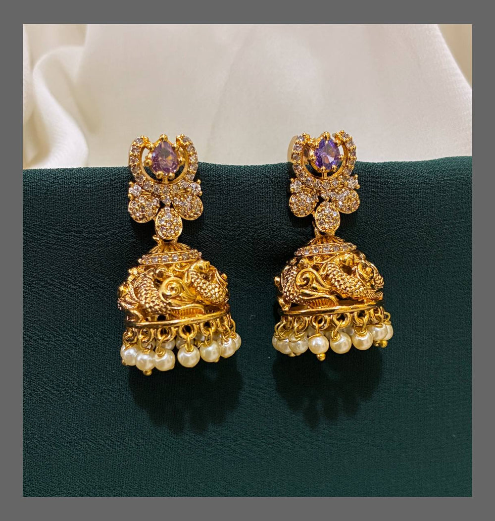 Add a touch of charm to your look with these White Elegant Jhumki Earrings in Nakshi design. Their intricate craftsmanship and graceful silhouette make them perfect for adding a playful sparkle to any outfit, whether casual or festive. Light and comfortable, they bring a delightful bounce to your style!