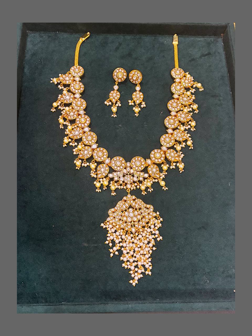 This White Jadau Bottu Haram - KH00174 is a stunning piece of jewelry that combines traditional Indian design with modern elegance. Made of white gold and adorned with intricate jadau work, this necklace is both sophisticated and versatile. Perfect for any occasion, this necklace is sure to make a statement and become a treasured piece in your collection.