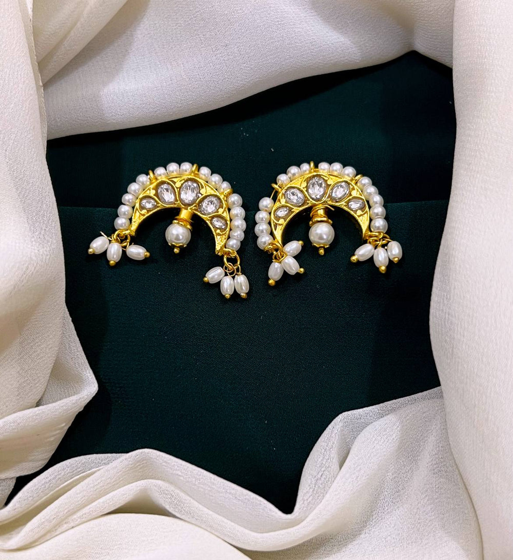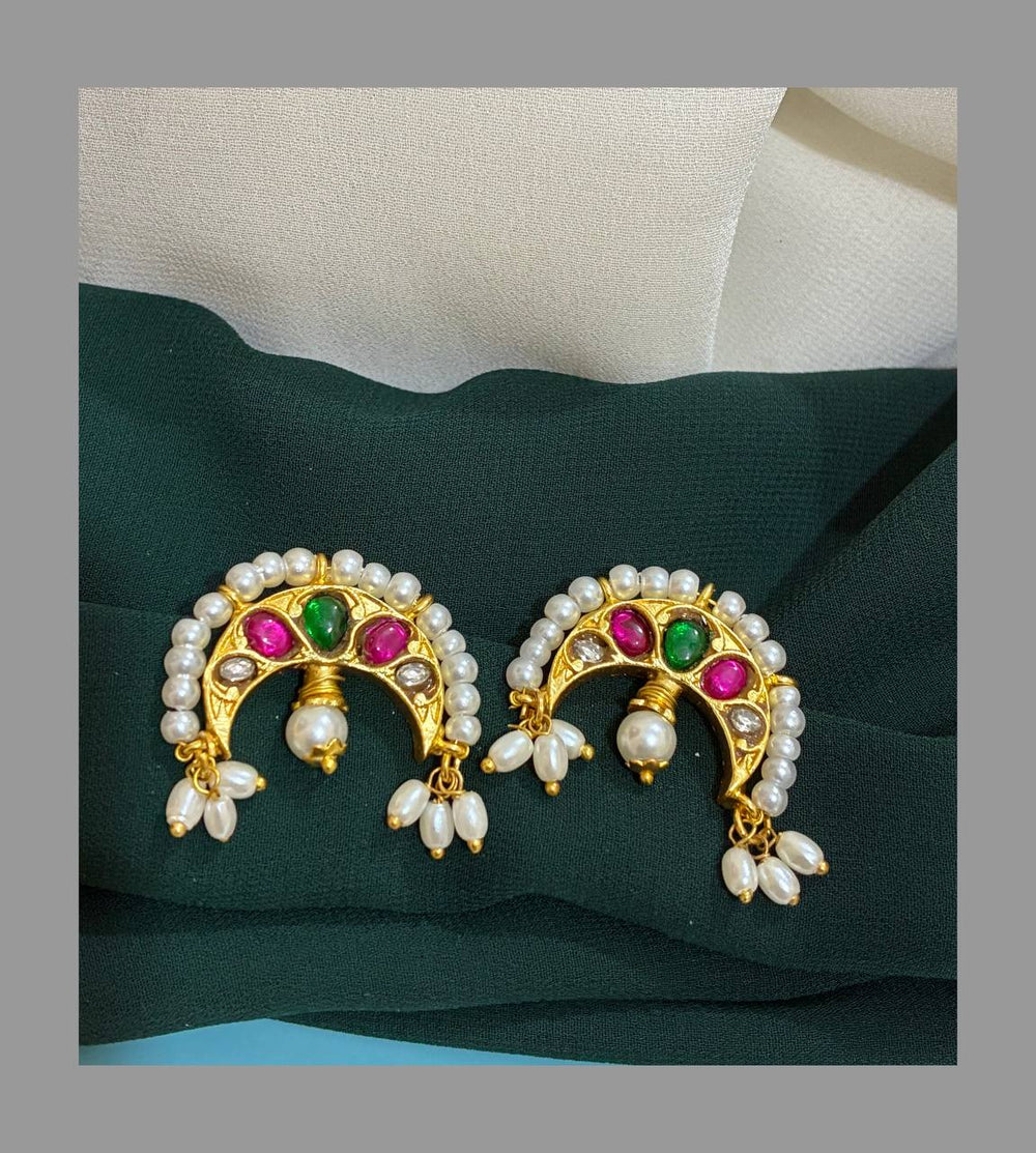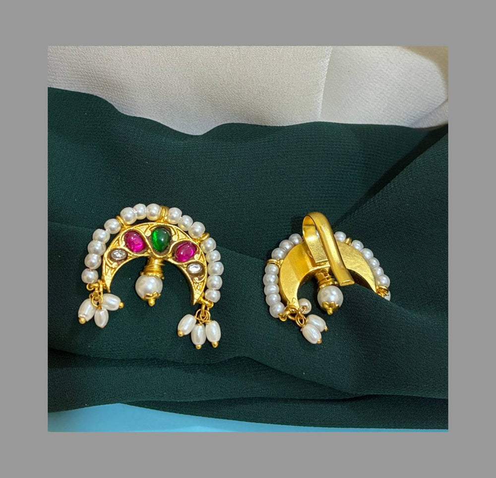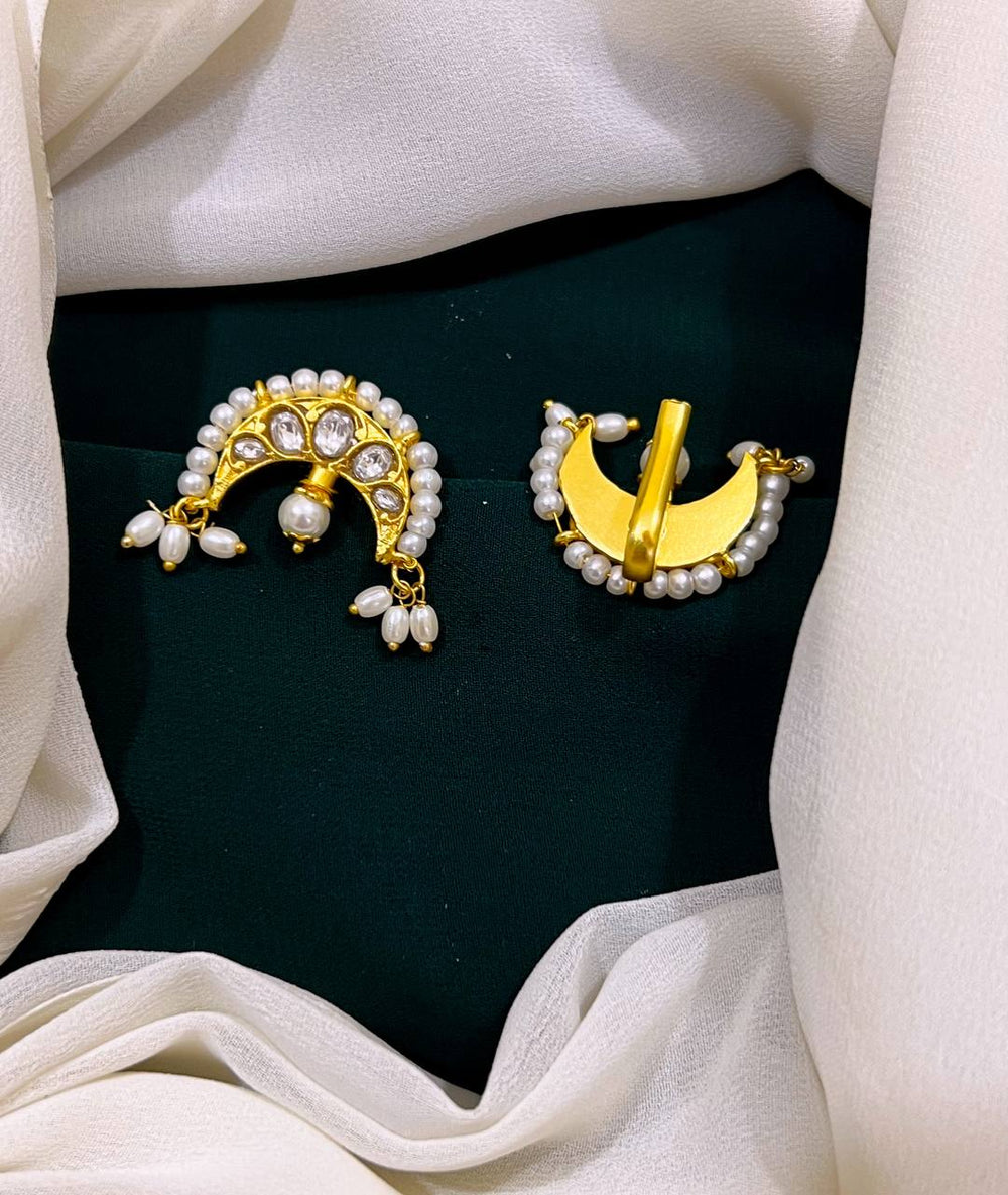 This White Jadau Moon Shaped Bugadi combines traditional craftsmanship with elegant design. Its delicate moon shape adorned with sparkling white jadau stones adds a subtle charm to any outfit. Perfect for daily wear or special occasions, this bugadi offers a graceful touch that complements your style effortlessly.Dispatch: - 2 days from the order Date