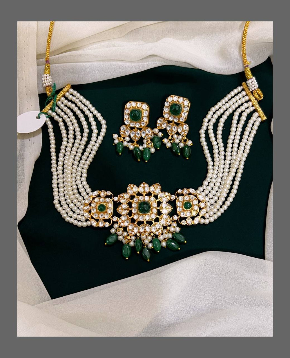 This elegant choker features lustrous white pearls beautifully paired with vibrant emeralds, creating a timeless accessory that enhances any outfit. Its classic design offers a graceful touch for special occasions or everyday wear, making it a versatile addition to your jewelry collection. Comfortable to wear and crafted with care, this choker brings a subtle yet striking charm to your look.