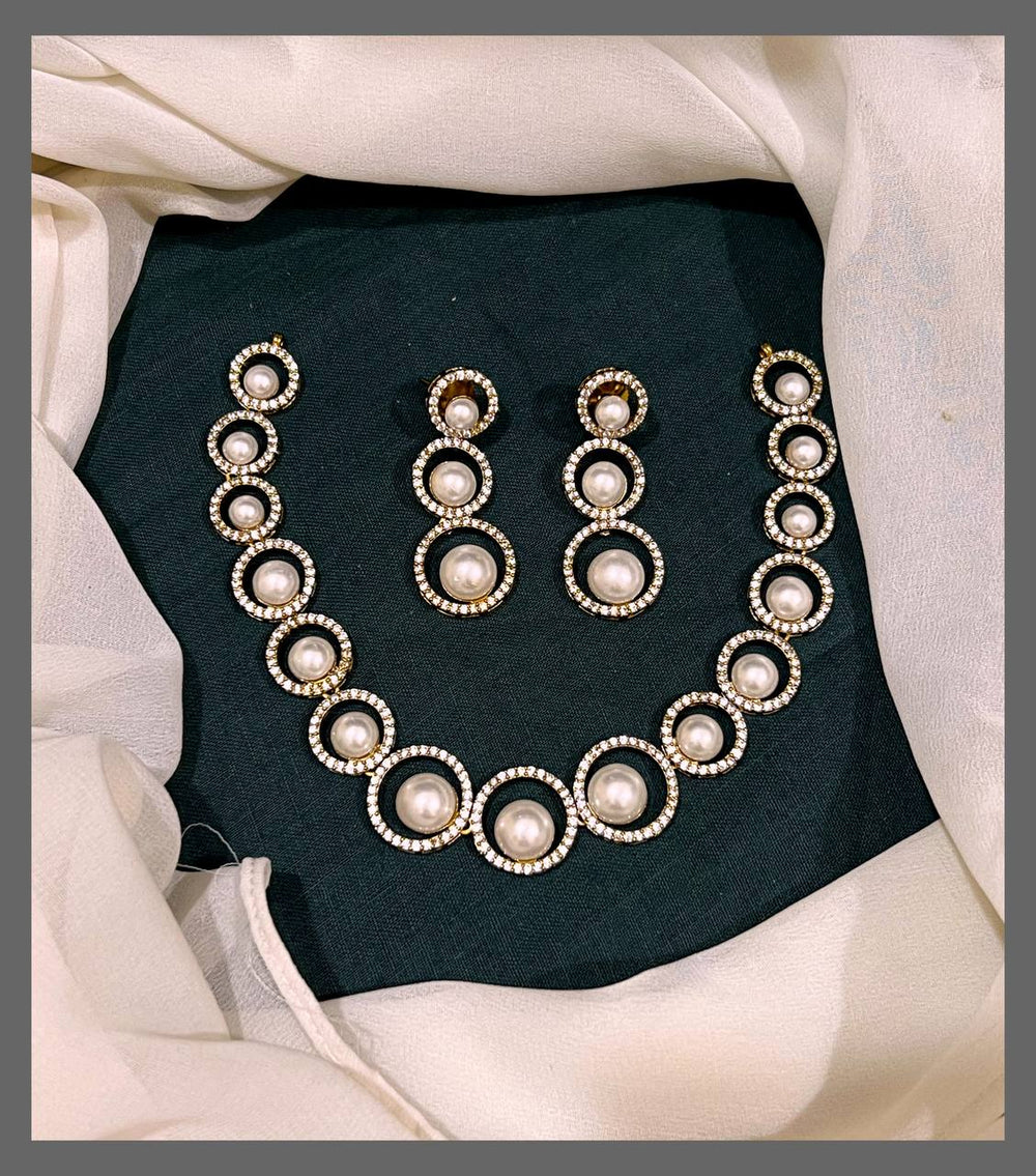 Elevate your everyday elegance with this stunning White Pearl and White Stone Necklace. Featuring lustrous white pearls paired with complementary white stones, this piece brings timeless sophistication to any occasion. The delicate design works beautifully layered or worn solo, making it a versatile addition to your jewelry collection. Perfect for both casual gatherings and special celebrations, this necklace combines classic charm with contemporary style. Crafted with care, it's a piece you'll treasure for years to come.