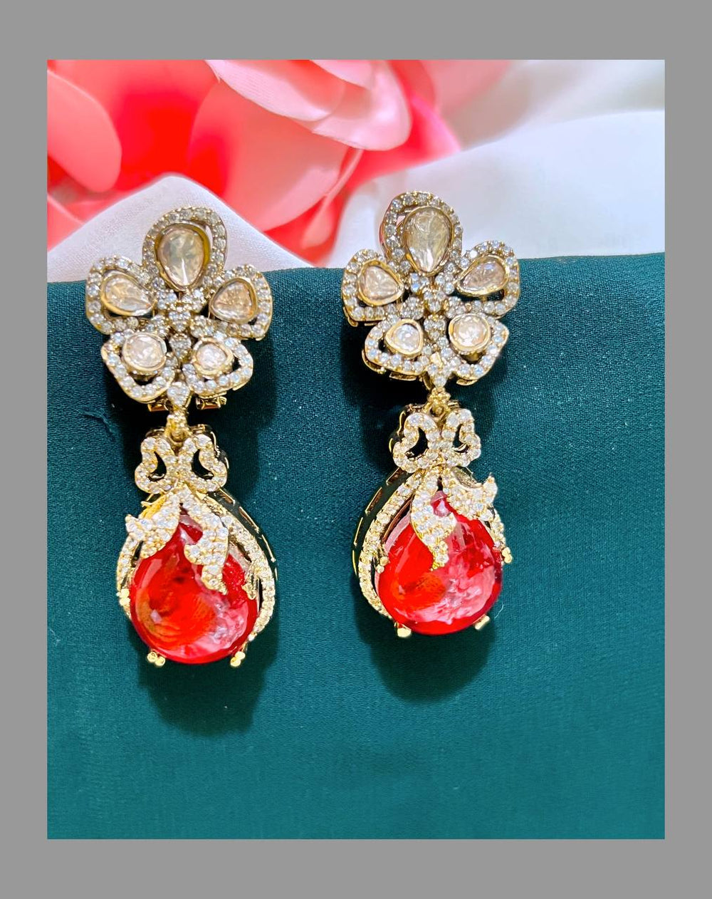 These Victorian-style earrings feature delicate white stone flowers accented with vibrant ruby centers, offering a timeless elegance. Perfect for adding a touch of classic charm to any outfit, they blend vintage beauty with subtle color to enhance your look gracefully. Comfortable to wear, they make a thoughtful gift or a cherished addition to your jewelry collection.