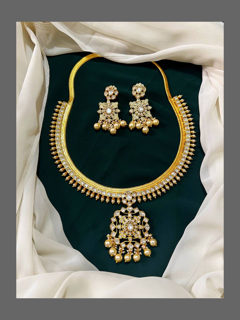 This beautiful White Stone with White Pearl Nakshi Necklace is a stunning addition to any collection. The combination of white stone and pearl creates a classic and elegant look. Handcrafted with precision, this necklace is sure to make a statement and elevate any outfit.